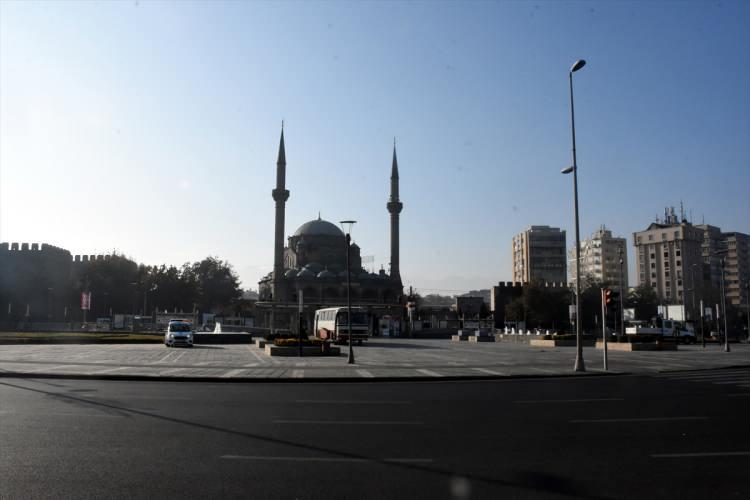 Kayseri'de yeni tip koronavirüsle (Kovid-19) mücadele tedbirleri kapsamında uygulanan sokağa çıkma kısıtlamasında cadde, sokak ve meydanlarda sessizlik sürüyor.