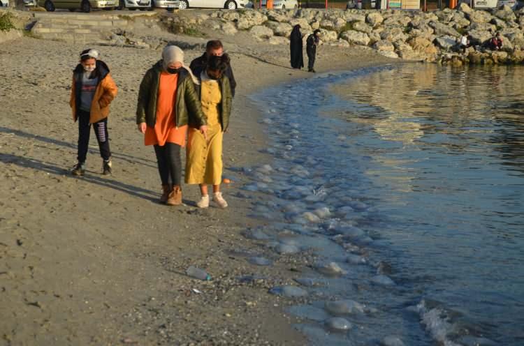 Avcılar sahiline cuma günü inenler gördükleri karşısında şaşırdı. Binlerce büyük denizanasının kıyıdaki kum veya kayalıkların yanına geldiği, sahili doldurduğunu görenler bunları korku yaşadı.