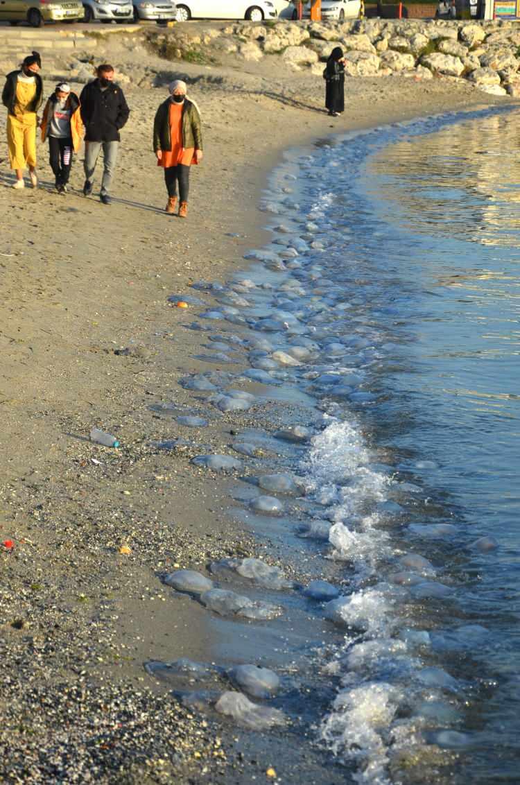 İBB'ye bağlı İstanbul Çevre Yönetimi Sanayi ve Ticaret A.Ş. (İSTAÇ) ekipleri sabah günün ilk ışıkları ile birlikte Avcılar sahiline gelerek ellerindeki tırmıklarla sudaki ve kıyıya vuran her biri en az 1 kilo ağırlığındaki denizanalarını tek tek toplamaya başladı.