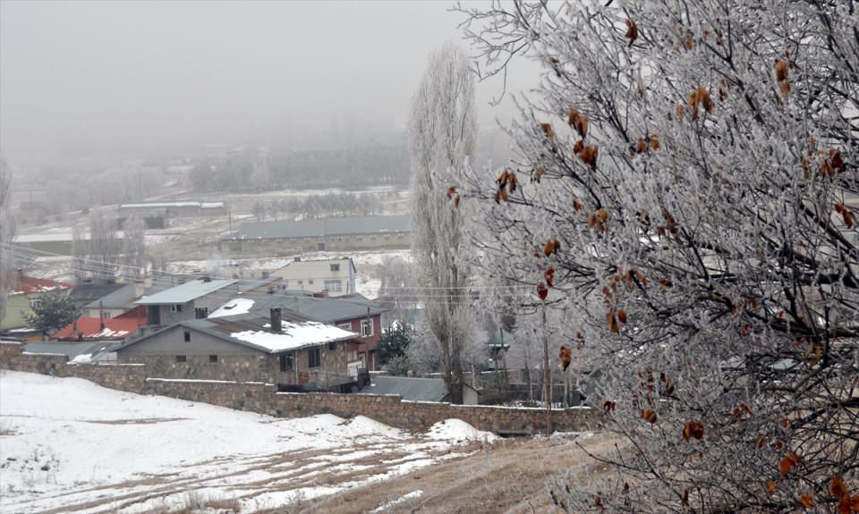 Kars'ta ağaçlar kırağıyla beyaza büründü