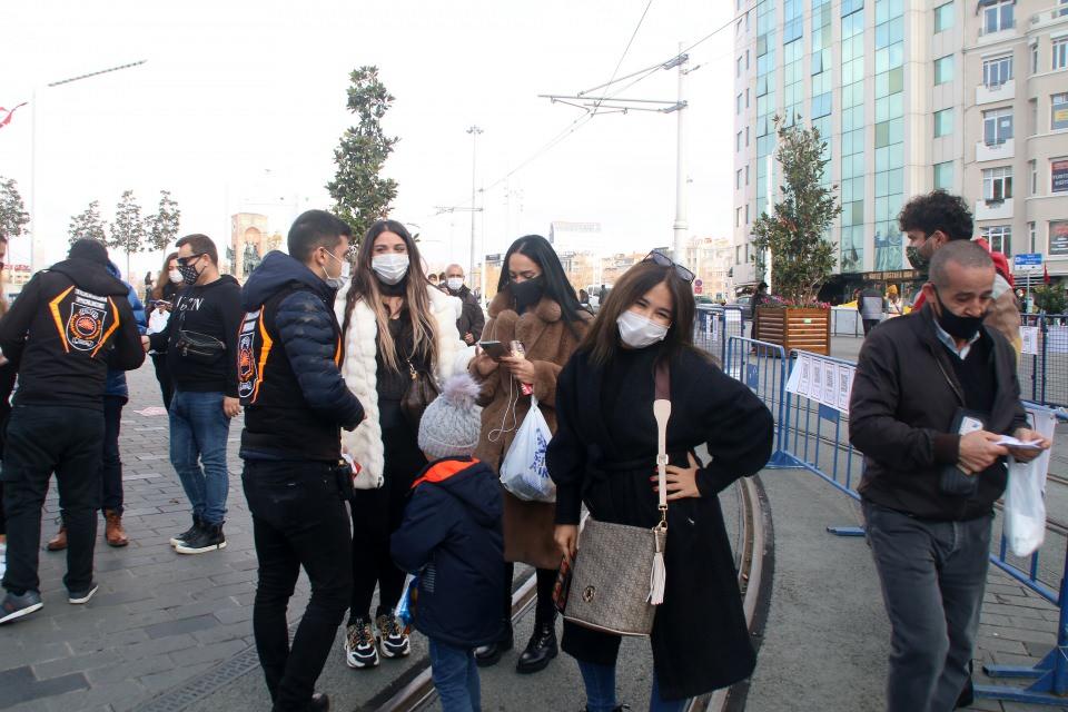 Kısıtlama dışında kalan turistler, denetleme noktasında, polis tarafından yapılan pasaport kontrolünün ardından dolaşmaya çıkarken, caddede yoğunluk oluştu.