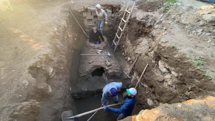 İlçenin gündemi haline gelen tarihi eseri etrafta toplanan vatandaşlar şaşkınlıkla izledi.