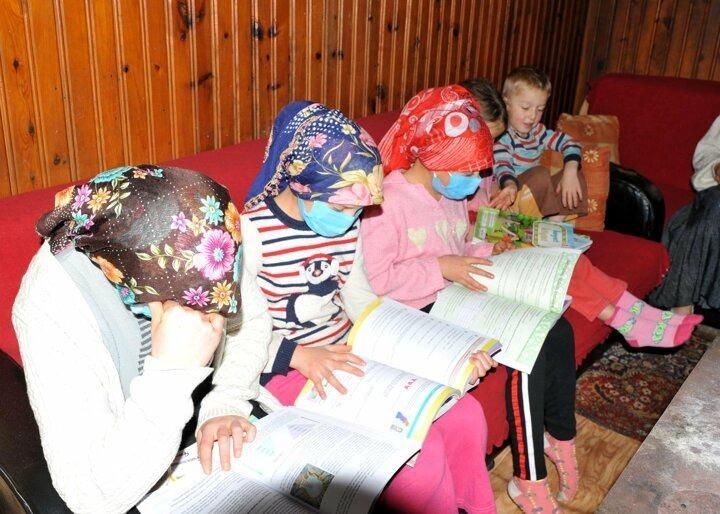 7 çocuk tek telefon! Derslerini böyle takip ediyorlar...