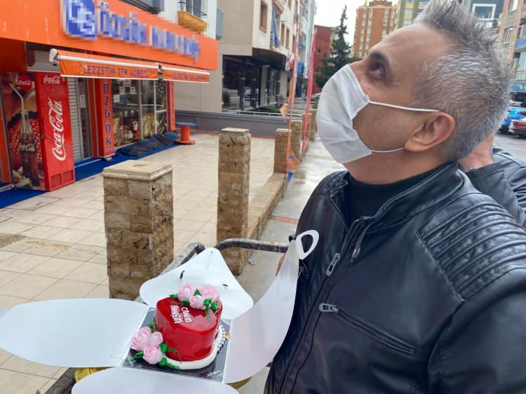 Annesine doğum gününde vinçle pasta sürprizi yaptı