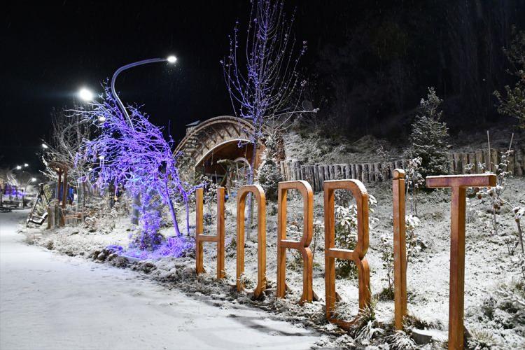 Kent girişindeki Aksu Parkı'nda da kar yağışının ardından seyirlik görüntüler oluştu.