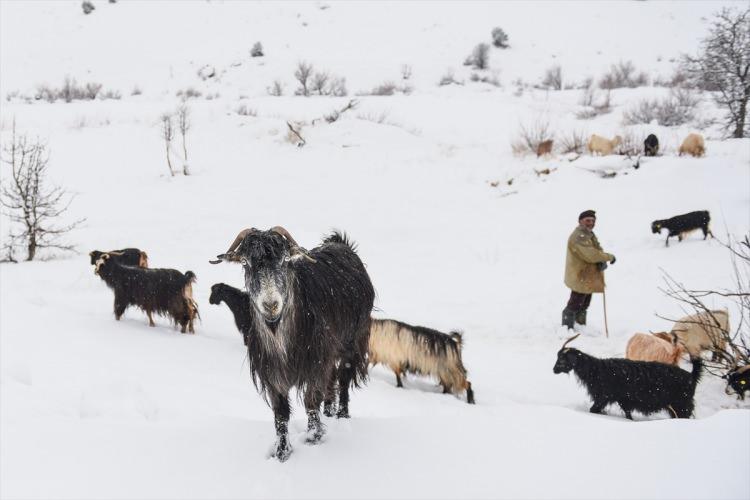 Kar kalınlığının yer yer yaklaşık 30 santimetreye kadar ulaştığı köylerde, besiciler temel geçim kaynağı olan hayvanlara daha iyi bakabilmek için zorlu kış şartlarıyla mücadele ediyor.