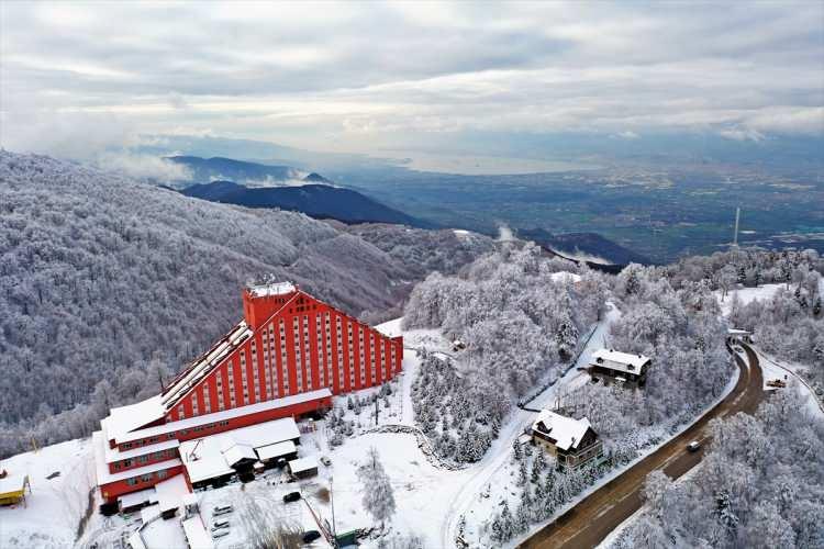 Kocaeli'de Samanlı Dağları'nın zirvesinde bulunan Kartepe, kar yağışı dolayısıyla beyaza büründü.