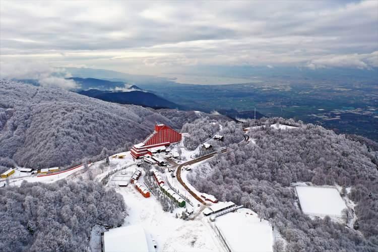 İzmit Körfezi manzarasıyla eşsiz güzellikler sunan Kartepe'deki kayak merkezinde kar kalınlığı 5 santimetre ölçüldü.