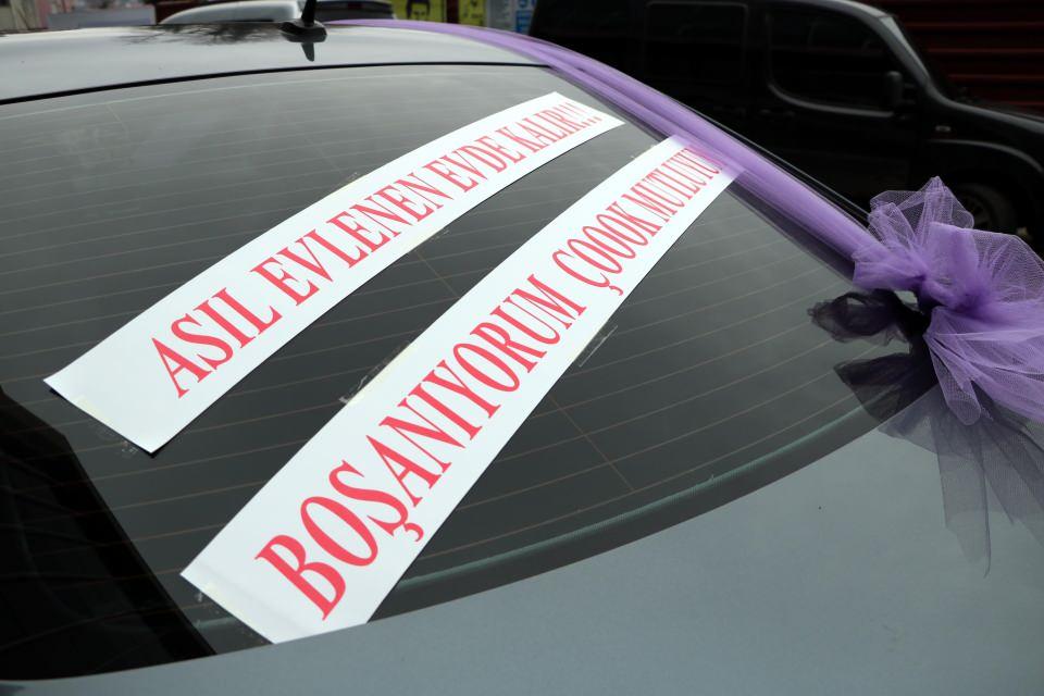 Zonguldak'ta maden işçisi Serkan Tepebaşı (37), boşanma davasına gelin arabası gibi süslediği ve üzerine, 'Asıl evlenen evde kalır. Boşanıyorum çok mutluyum' diye yazdığı otomobiliyle geldi.