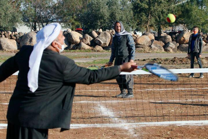 Malzeme eksikliği ve sahadaki zemin bozukluluğuna rağmen her yaş grubunun raket salladığı köyde, tenis karşılaşmaları renkli görüntülere sahne oluyor.