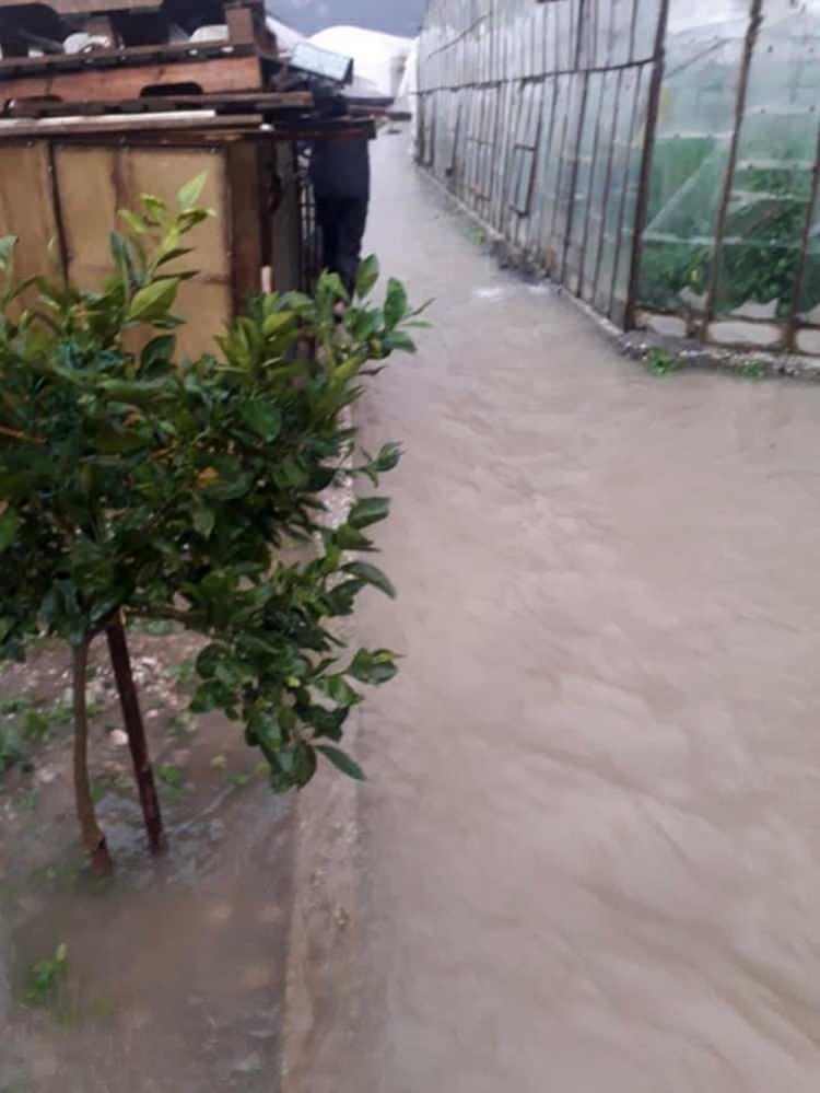 Kent merkezinde çeşitli binalar su baskınına uğrarken, Demre ilçesinde de bazı seraları su bastı.