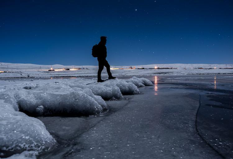 "Göl üzerinde olmak harika bir duygu, her yıl mutlaka gelip gezemeye çalışıyorum. Bugün de buz harika, çok şeffaf ve gölün dibini görebiliyoruz. Bir hafta önce Çıldır Gölü buz tutmuştu, işlerin yoğunluğundan gelememiştik. Bugün gelerek fotoğraf çekip bu anları ölümsüzleştirdik. Doğanın, kampın, buz tutan gölün tadını çıkarıyoruz."