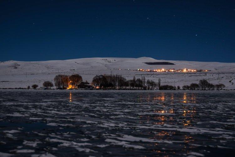 Turistler Çıldır Gölü'ndeki masalsı kış güzelliğinin keyfini çıkarıyor