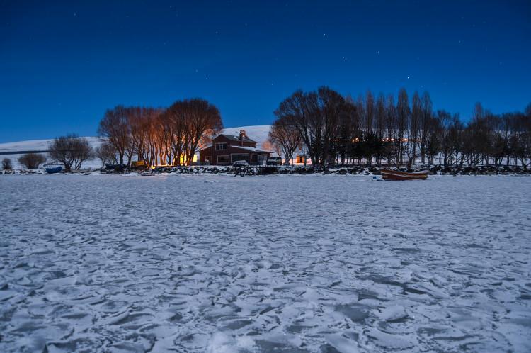 Turistler Çıldır Gölü'ndeki masalsı kış güzelliğinin keyfini çıkarıyor