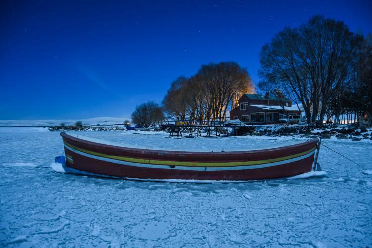 Turistler Çıldır Gölü'ndeki masalsı kış güzelliğinin keyfini çıkarıyor