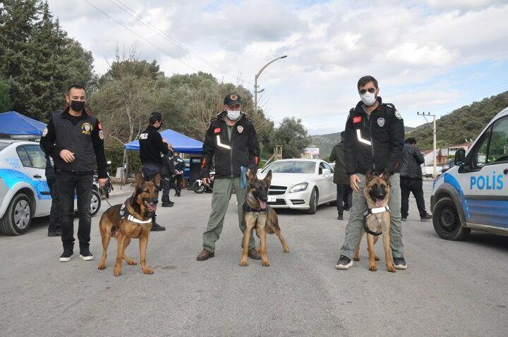 Araçların bagaj kısımlarında özel eğitimli bomba ve narkotik köpekleri Aşil, Jovy ve Adam ile arama yapıldı.