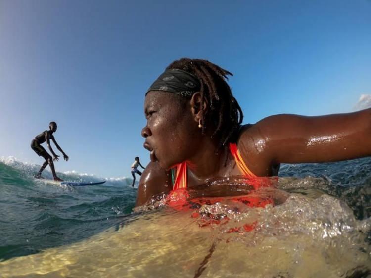 Senegal'in ilk profesyonel kadın sörfçüsü Khadjou Sambe, 18 Ağustos 2020.