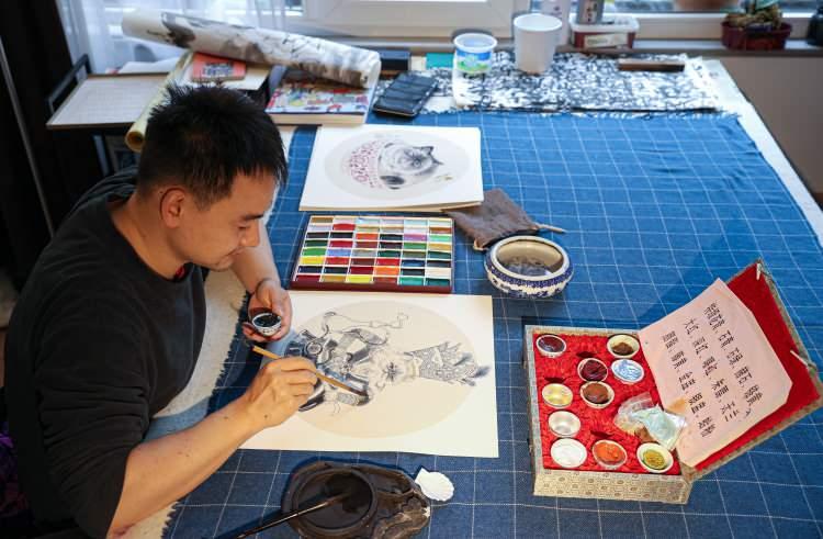 İstanbul'a yerleşen Çinli sanatçı Türk-İslam motiflerini Çin sanatıyla sentezliyor