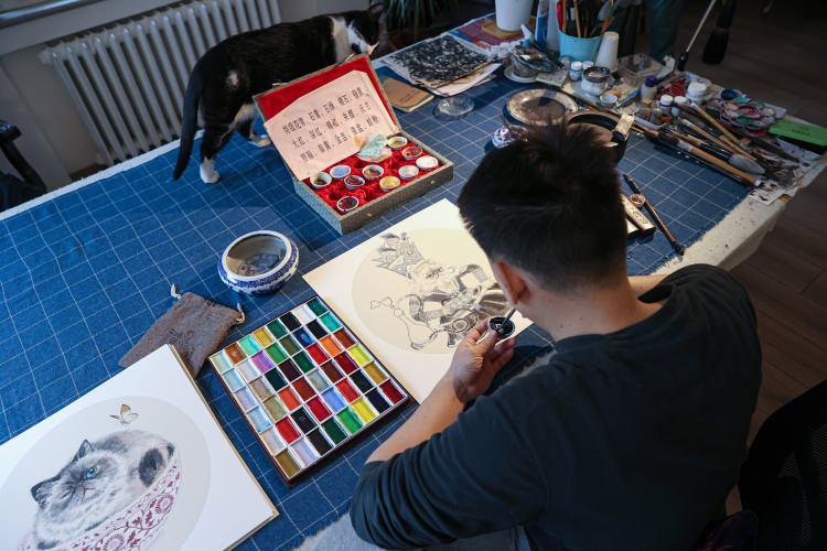 İstanbul'a yerleşen Çinli sanatçı Türk-İslam motiflerini Çin sanatıyla sentezliyor