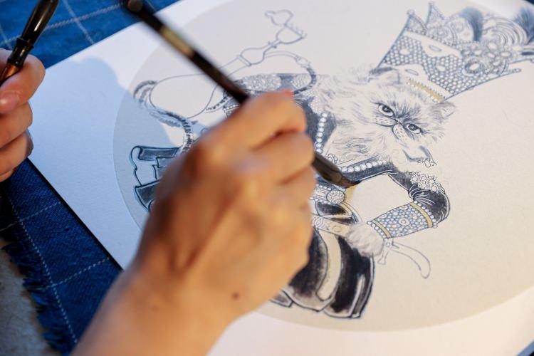 "Kedi kompozisyonunda arka fonda Türk-İslam motiflerini kullanıyorum. Tezhip, altın, halkari ve farklı teknikleri de kullanıyorum. Kedi tabii ki işlerimin merkezinde. İstanbul meşhur bir kedi şehri olmuş. Herkes biliyor. Son zamanlarda Çin'de de İstanbul kedileriyle ilgili belgeseller yayınlandı. Hatta yakın arkadaşlarım sadece kedi sevmek için İstanbul'a gelmek istiyor. Birçok arkadaşım Japonya, Çin ve Amerika'dan bunun için gelmek istiyor. Tabii ki bu korona salgınının bitmesinin ardından mümkün olacak. "