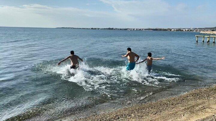 Vatandaşlar, kızaklarıyla karın keyfini çıkarırken, Marmara’nın batısında kalan Balıkesir’in Edremit ilçesinde ise yazdan kalma havada denize girdiler.