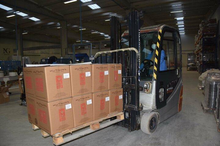 Kütahya 1'inci Organize Sanayi Bölgesi'nde yer alan Kütahya Porselen lojistik fabrikasında, sadece kadınların çalışması dikkat çekiyor.