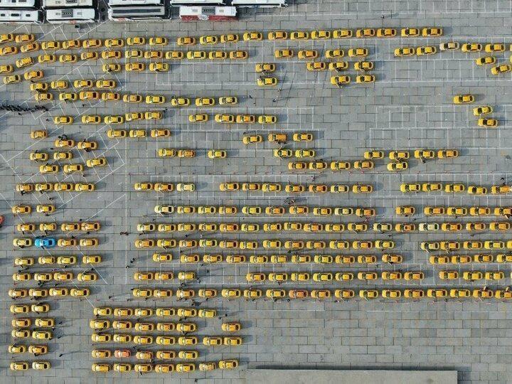 Saatlerdir kuyrukta bekleyen taksiciler ise, duruma isyan etti. Kilometrelerce oluşan kuyruk havadan görüntülendi.
