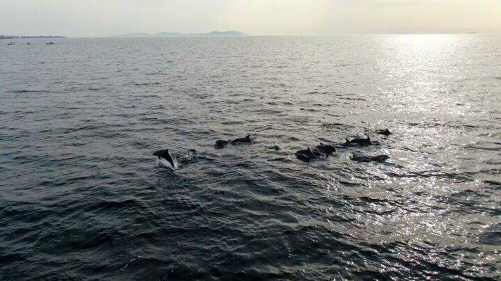 Sevimlilikleri ile kendilerine hayran bırakan yunus sürüsü, adeta boğazın tadını çıkardı. Yunusların avlanması ve dans edercesine yüzmesi havadan görüntülendi.