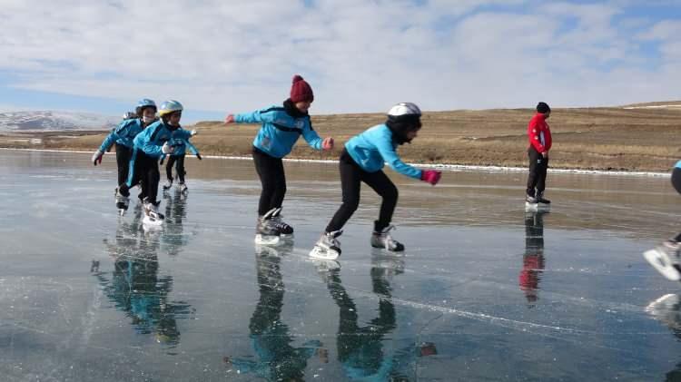 Türkiye'nin en büyük doğal buz pistinde bir araya gelen çocuklar, paten yaparak gönüllerince eğlendi. Buz üstünde dakikalarca patenle kayan çocuklar, "İnanılmaz bir göl ve burada olmak çok güzel. Doyulmaz anlar yaşadık" dedi.