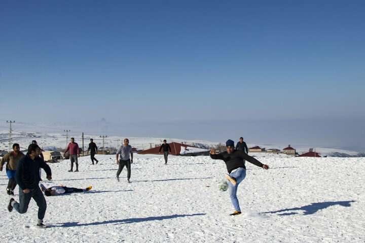 Köyler arası düzenlenen turnuvalarda buluşan gençler, kar üzerindeki futbolla zorlu köy yaşantılarını güzelleştiriyor.Köyde maç yaptıkları alanda futbol sahasındaki gibi kaleleri bulunan köylülerin günlük kıyafetleriyle kıyasıya mücadele etmesi renkli görüntüler oluşturuyor.