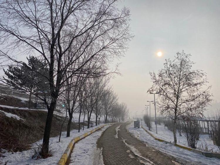 Parklar yağan kar nedeniyle beyaza bürünürken, ağaçlarda oluşan kırağı ise güzelliğiyle göz kamaştırdı.