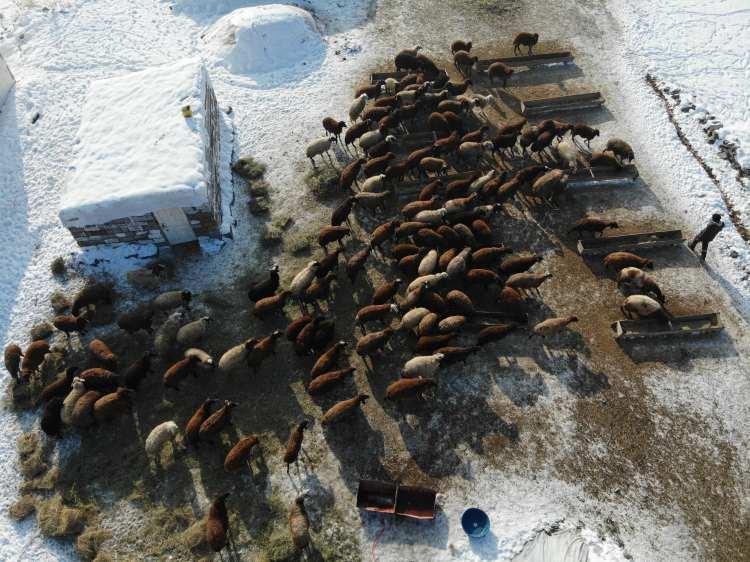 Sabahın ilk ışıklarıyla karla kaplı dağlara giden besiciler, branda üzerine koydukları otları, atlar yardımıyla veya sırtlarında taşıyıp beyaz örtüyle kaplı tarlalara sererek, hayvanlarını besliyor.