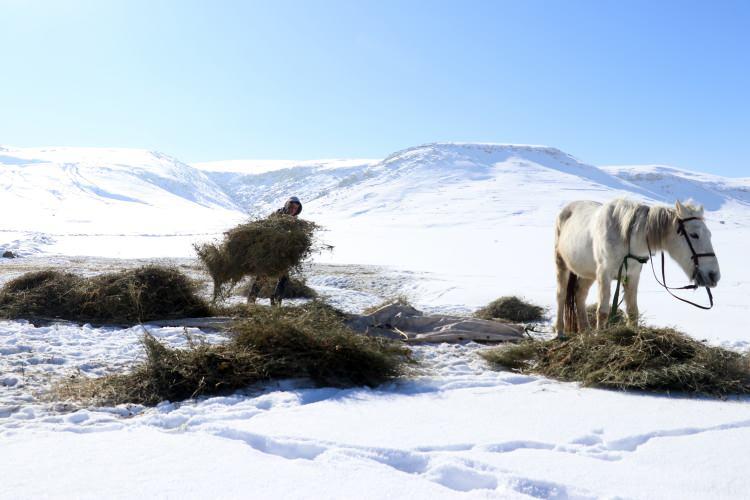Ağrı'nın dağ köylerindeki besicilerin zorlu kış mesaisi