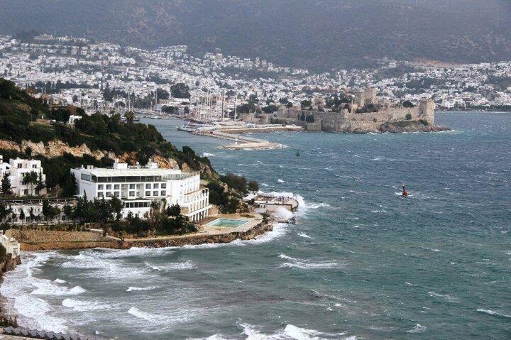 Gece başlayan ve güneydoğu yönünden esen fırtına Bodrum’da etkili olmaya başladı.