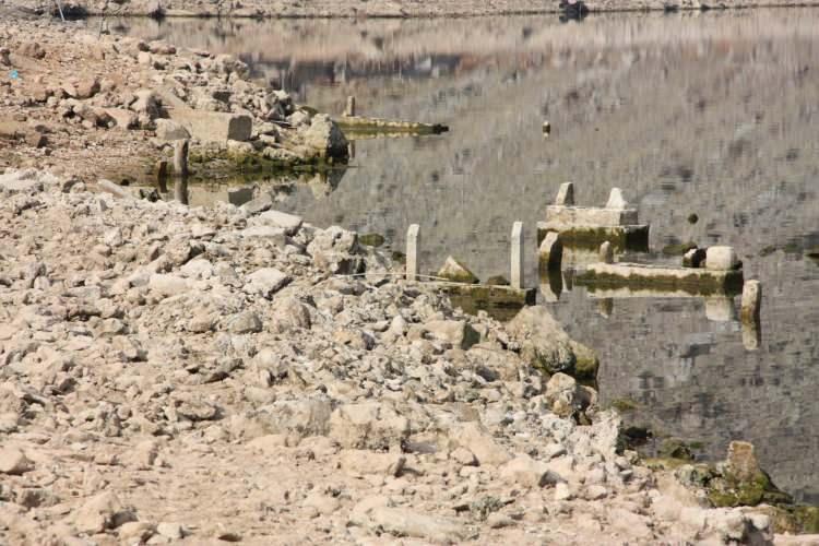 Eğil ilçesinde bulunan Dicle Barajında sular, kıyıdan 20 metre uzaklaşarak 15 metre de derinlik kaybetti. Su seviyesi düşen baraj gölünde, sular altında kalan Çakırören Mahallesi gün yüzüne çıkardı.
