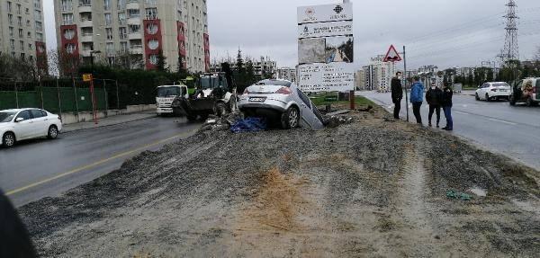 Başakşehir'de boş yolda kaza yaptı; Otomobille çukura düştü