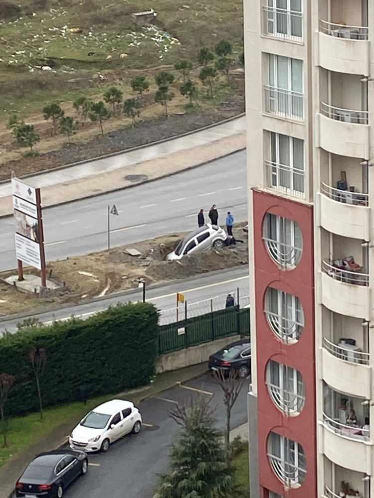 Başakşehir'de sokağa çıkma kısıtlamasının olduğu günde boş kalan yolda kaza yapan bir sürücü otomobili ile çukura düştü. Sürücü kazada yara almazken çukura düşen otomobil uzun uğraşlar sonucu çıkarıldı.