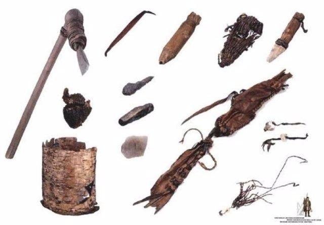 Araştırmacılar, Ötzi adını verdikleri Taş Devri adamının yanında bir yay, 14 ok, bir bıçak ve bakır bir balta taşıdığını tespit ettiler.