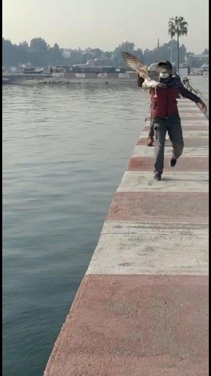 Oltasına balık yerine martı takıldı