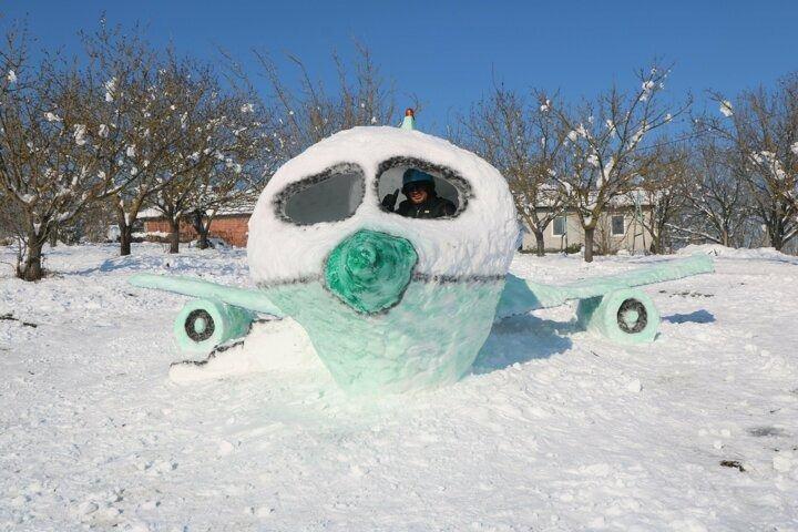 Hiç uçağa binmemişti: 4 günde 5 metrelik kardan uçak yaptı