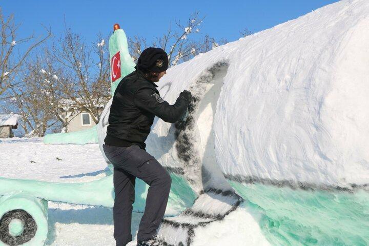 Hiç uçağa binmemişti: 4 günde 5 metrelik kardan uçak yaptı