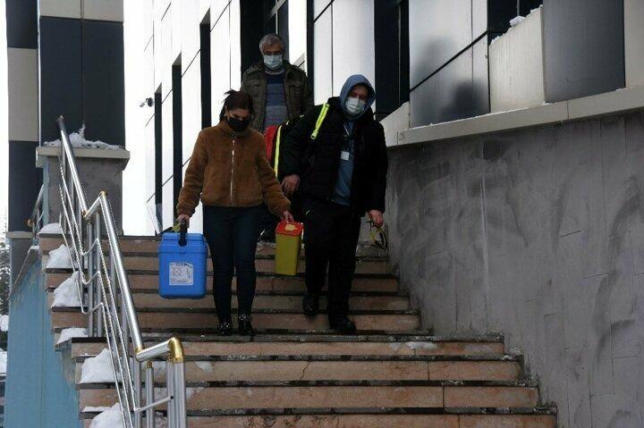 3 metrelik karı aşıp koronavirüs aşısı yaptılar