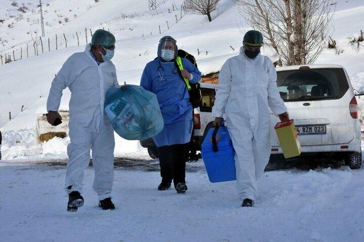 3 metrelik karı aşıp koronavirüs aşısı yaptılar