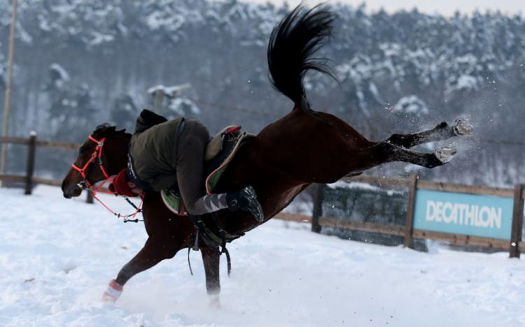 Uludağ'da atların kar banyosu keyfi
