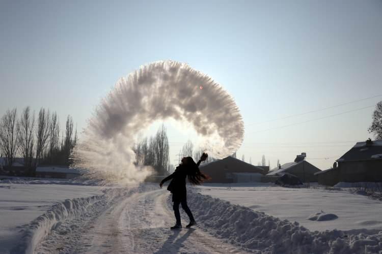 Ağrı'da havaya atılan kaynar su dondu