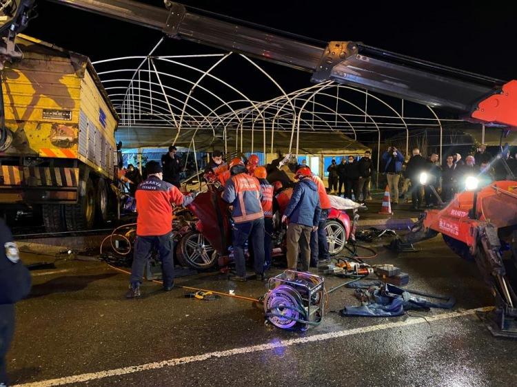 Feci kaza: Kamyon 2 aracın üzerine devrildi