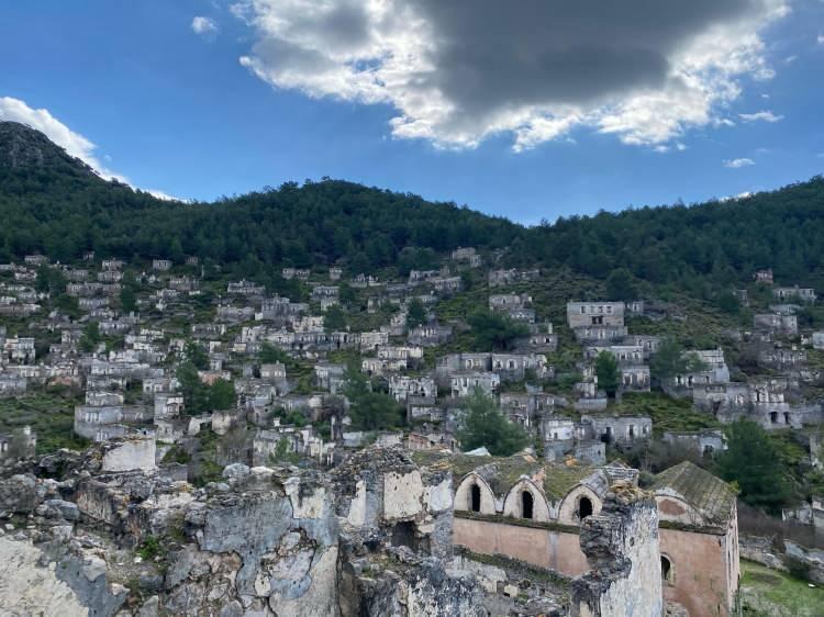 Muğla'nın Fethiye ilçesinde terk edilmiş çok sayıda Rum evi bulunduğu için 'hayalet köy' olarak anılan Kayaköy, göz alıcı tarihi dokusu ve doğasıyla görenleri hayran bırakıyor.