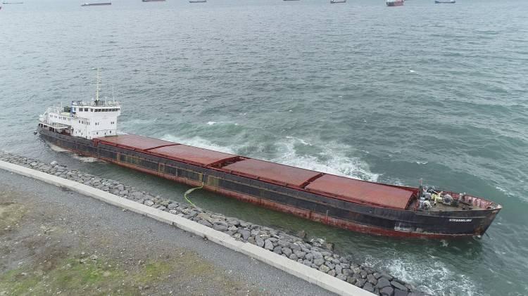 Marmara Denizi'nde şiddetli fırtınanın etkisiyle geçen cuma günü, Zeytinburnu, Ahırkapı'da Morini Limanına kayıtlı ve Comoros Bayraklı "STREAMLİNE" isimli kargo gemisi karaya sürüklenmişti.