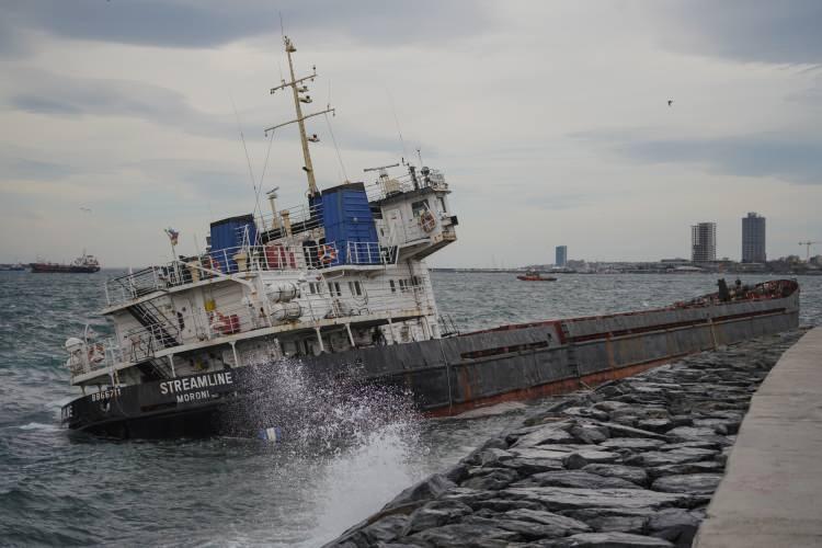 Zeytinburnu'nda karaya oturan gemi kurtarılmayı bekliyor