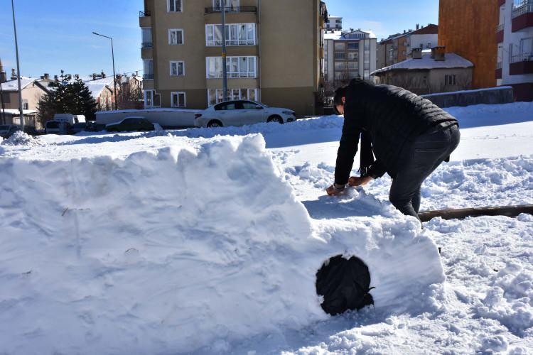 Görenler şaşırıp kalıyor! Kardan otomobil yaptı...